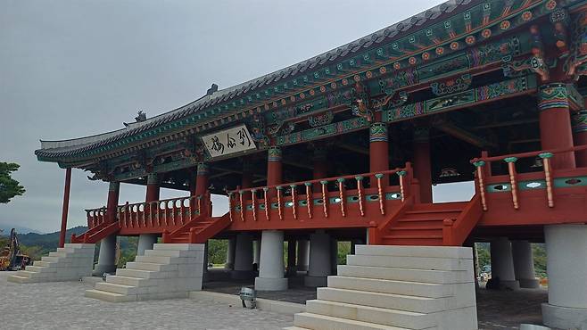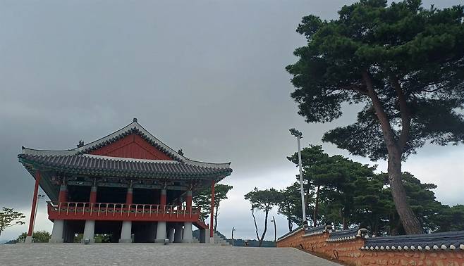 | ▲ 신흥동산에 다시 세워진 열선루(列仙樓). 이순신이 왕명을 거부하고 명량에서의 전투를 결단한 곳이다. |