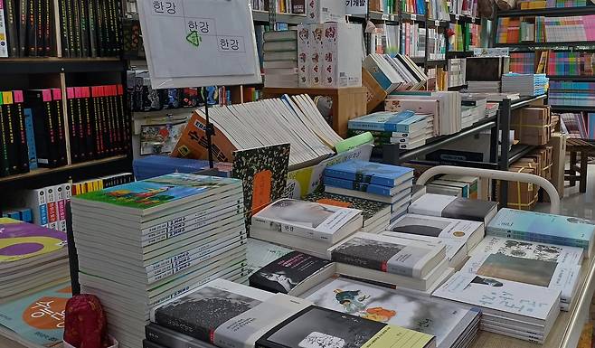 | ▲ 보성읍내를 지키는 대교서점. 학생용 참고서는 물론 노벨문학상을 받은 한강 작가의 소설 등 다양한 인문서적을 만날 수 있는 공간이다. |