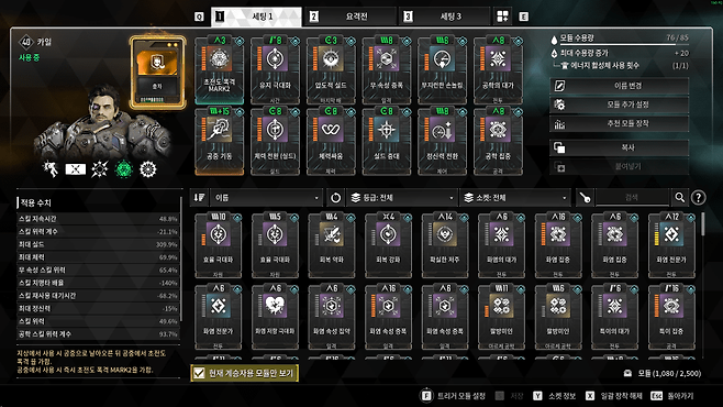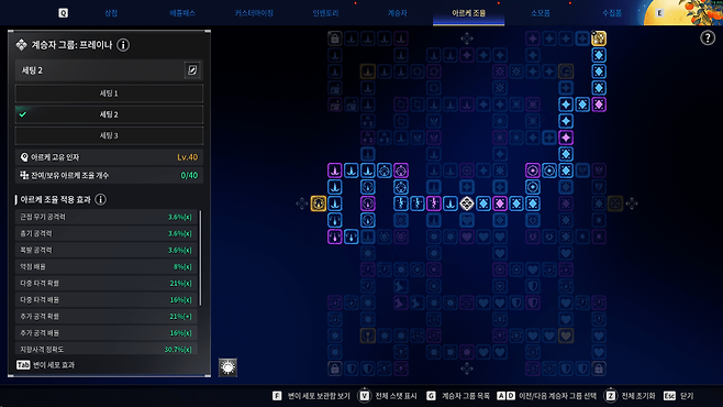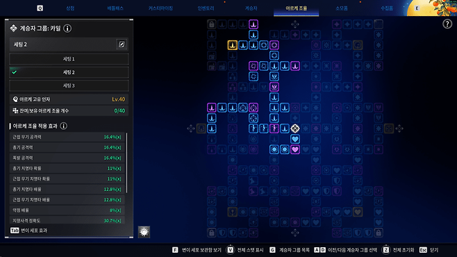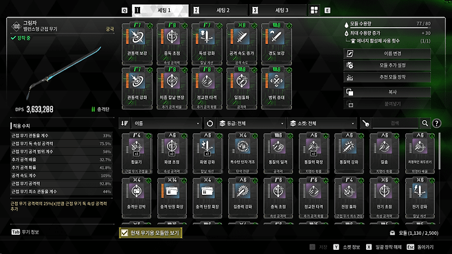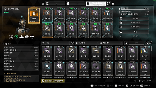 계승자 특성과 스킬, 모듈 시너지를 활용해 대미지를 극대화하는 기존 빌드와 달리, 근접 무기는 이런 핵심 요소가 부족하다.