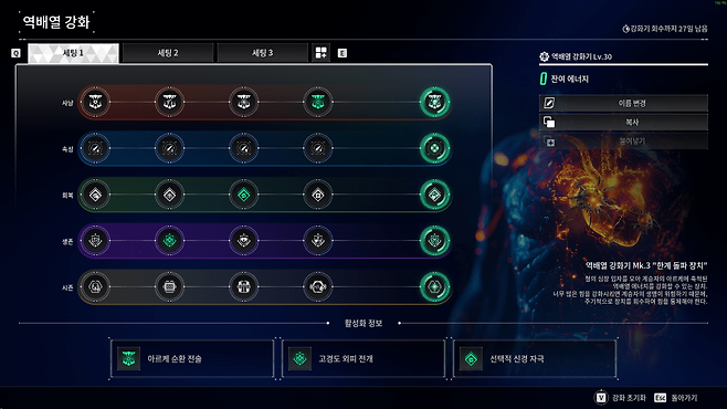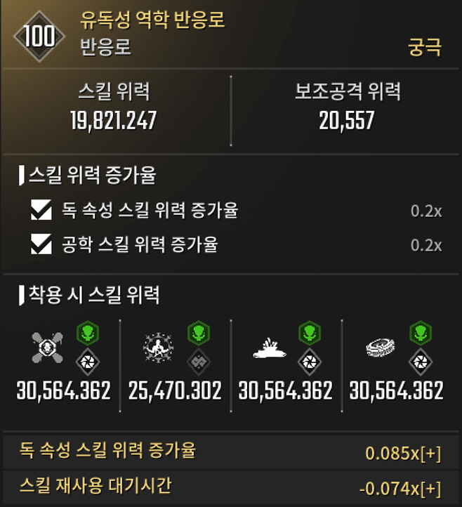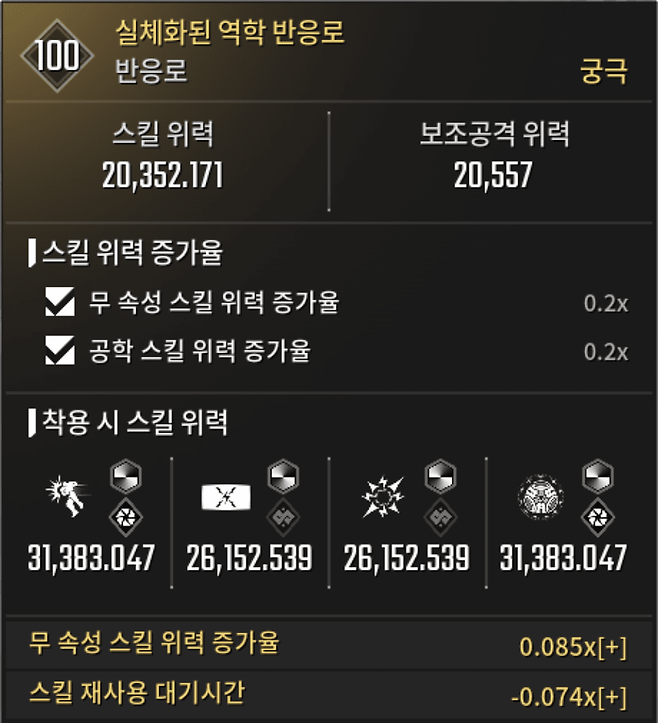 ※ 반응로 옵션: 스킬 재사용 대기시간 외 무관
