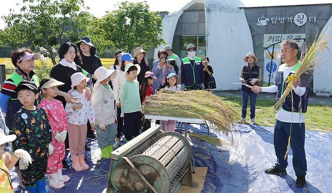 아이들은 논에서 뛰어놀며 수확의 기쁨을, 어른들은 추억 속 농촌 풍경을 되살리며 세대 간 따뜻한 소통의 시간을 보냈다.