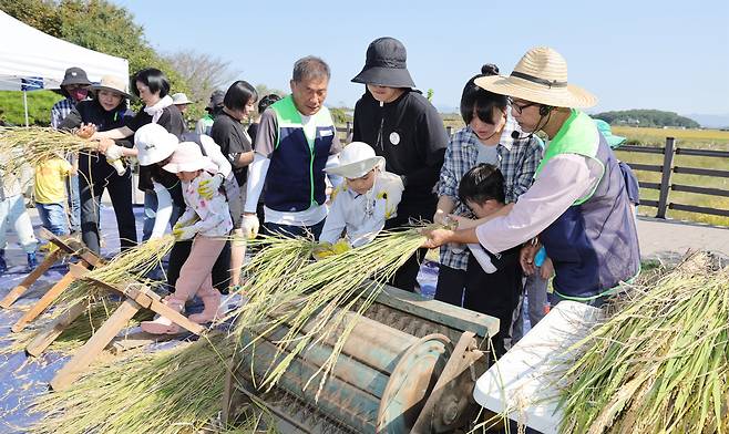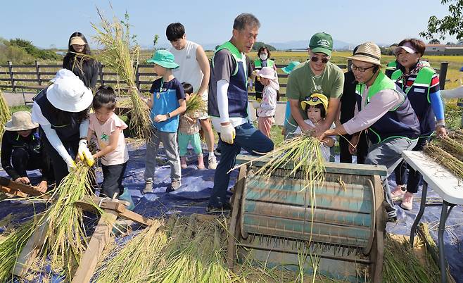 전통 벼 베기에 탈곡 체험 ... "생태 가치 다시 떠올려요"
