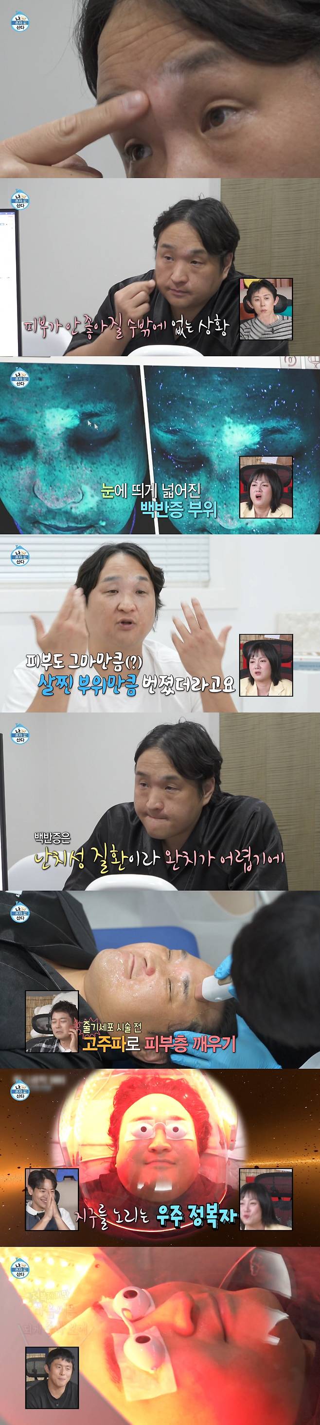 구성환은 10일 방송된 MBC '나 혼자 산다'에서 백반증 치료를 받기 위해 병원을 찾았다. 해외에서 영화 촬영 후 백반증이 생긴 구성환은 이후 선크림으로 관리하며 피부 색소들은 호전됐지만, "살도 많이 찌고 피부도 그만큼 살찐 부위만큼 번졌다"며 이전보다 백반증 부위가 넓어졌다고.