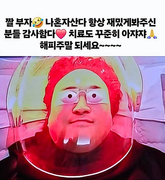 이에 치료를 진행, 이후 고통스러운 치료 과정이 끝나고 피부 진정 관리를 받는 과정에서 이 같은 다소 코믹한 짤이 탄생해 웃음을 안겼다.