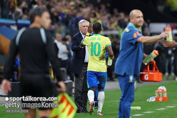 비니시우스에게 안첼로티 감독은 은사다. 레알에서 4년 동안 한솥밥을 먹었고, 이제는 대표팀에서 함께하고 있다. 비니시우스는 "안첼로티 감독을 이야기하는 건 정말 쉽다. 그는 항상 선수의 창의성을 살리고자 한다. 나 역시 안첼로티 감독과 함께할 때 좋은 모습을 보였다"며 "대표팀에도 좋은 영향을 미치고 있다. 몇 경기 되지 않았지만 벌써 경기력이 좋아졌다"고 전했다.