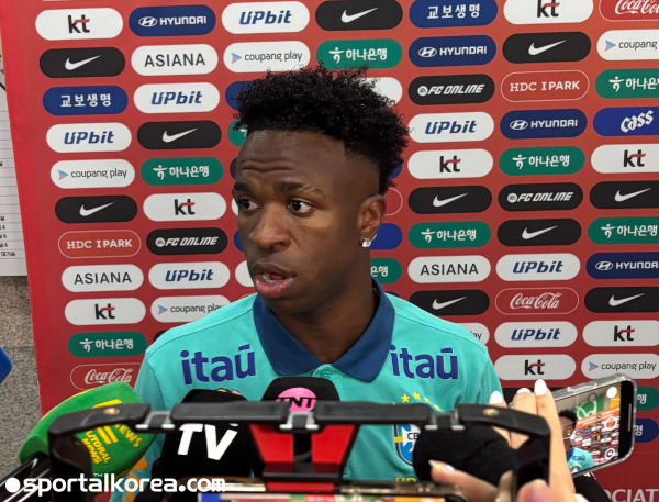 이날 멀티골을 신고한 이스테방을 향한 칭찬도 빼놓지 않았다. 비니시우스는 "정말 재능 있는 선수다. 최대한 도와주면서도 부담 없이 자신의 축구를 할 수 있게끔 해줘야 한다. 이스테방은 아주 어리고 이번이 첫 월드컵이 될 것이다. 분명 앞으로 큰 도움이 될 것"이라며 미소를 지어 보였다.