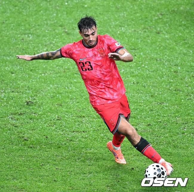지난 9월 미국 원정(미국·멕시코전)에서 처음 태극마크를 달았던 그는 이번 10월 A매치를 통해 처음으로 국내 팬들 앞에 섰다. 그 무대는 폭우 속에서도 6만 명이 넘게 들어찬 서울월드컵경기장이었다.