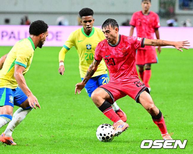 이날 세계적 명장 카를로 안첼로티 감독이 이끄는 브라질은 비니시우스 주니오르, 호드리구, 마테우스 쿠냐, 카세미루 등 최정예 멤버를 모두 출격시키면서 한 수 위의 전력을 제대로 보여줬다. 홍명보호는 상대의 뛰어난 개인기 앞에 준비한 스리백과 중원의 빈 틈이 공략당하면서 본선 무대를 앞두고 조직력 강화라는 또 하나의 숙제를 안게 됐다.