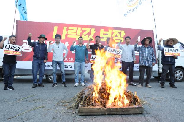 전국농민회총연맹 광주전남연맹은 10일 오전 10시 무안군 남악읍 농협중앙회 전남본부 앞에서 ‘나락값 8만원 보장 농기계행진 농민결의대회’를 열고 “농협이 쌀 시장 가격 하락을 유도하고 있다”고 비판했다. 이날 집회는 트랙터 10대, 트럭 110여대, 농민 200여명 등이 참석했다.