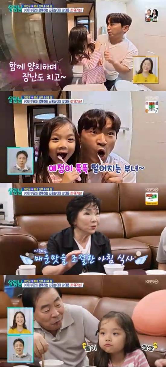 이날 이민우는 예비신부 이아미, 6세 딸을 데리고 부모님 집에 합가한 뒤 달라진 집 분위기를 공개했다.