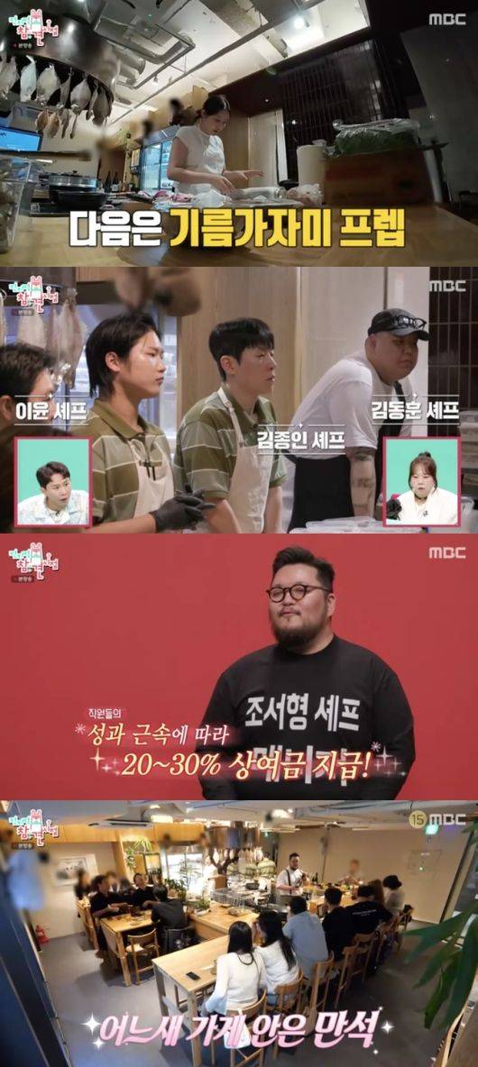 조서형은 함께 일하는 셰프들과 함께 빠른 재료 손질에 나섰다. 패널들은 수많은 일에 직원들의 불만이 없는지 물었고, 매니저는 “월 급여 20~30%가 상여금으로 지급된다. 힘들어하면 바로 (금융) 치료를 한다”라고 말해 부러움을 자아냈다.