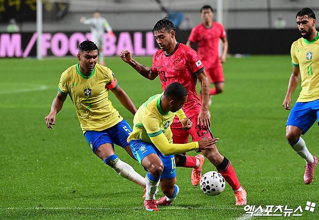매체는 "0-2로 뒤진 상황에서 중앙 미드필더로 투입됐으나, 첼시의 젊은 스타 이스테방과 호드리구가 빠르게 4-0으로 점수차를 벌렸다. 이스테방과 호드리구는 이미 전반전에 골을 기록한 상태였다"면서 "한국은 한 시간여 만에 김민재(바이에른 뮌헨)와 손흥민(LAFC) 등 주전 선수들을 교체했다. 비니시우스가 최종 스코어를 결정지었다"고 덧붙였다.