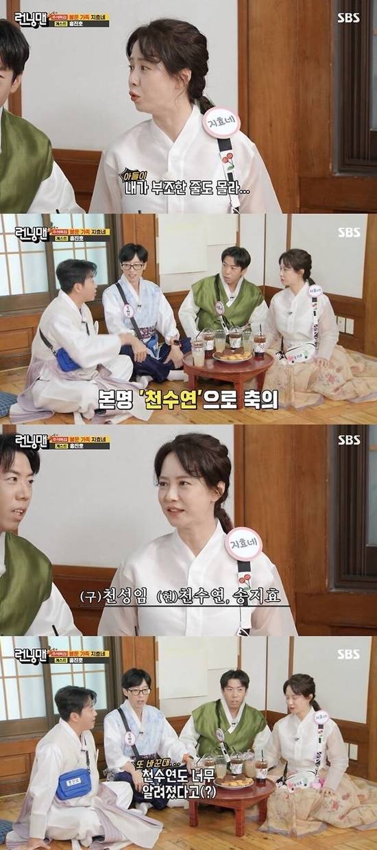 송지효는 "저도 '천성임'에서 '천수연'으로 개명을 했다"면서 "개인적인 이유였다. ('천성임'이라는 이름이 특이하다 보니) 카드 회사 같은 곳에 전화 연결을 할 일이 있을 때 이름을 말하면 목소리만 듣고도 알아보시는 분들이 있더라. 사실 약간 불편한 부분도 있었다"고 솔직하게 얘기했다.