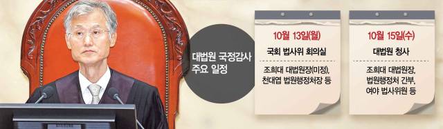 12일 법조계에 따르면 국회 법사위는 이번 주 이틀 간격으로 대법원 국감을 진행한다. 13일 국회 법제사법위원회 종합국감에 이어 15일 대법원 청사에서 현장 국감이 열린다. 민주당이 이번 국감을 사실상 ‘조희대 청문회’로 규정한 가운데, 조 대법원장이 어떤 대응 기조를 취하느냐에 따라 정치권과 사법부의 긴장 구도가 달라질 전망이다.