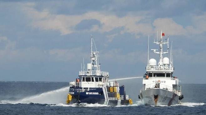 필리핀 해경이 공개한 사진과 영상에는 물대포를 쏘는 중국 해경선이 필리핀 선박을 따라다니는 모습이 담겼습니다.