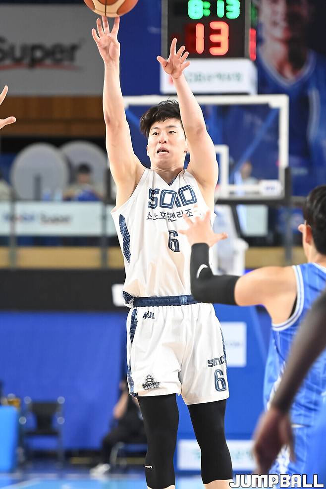 소노는 경기 시작 3분 59초 동안 3점 플레이 4개로 12-7로 앞섰다. 이후 2쿼터 한 때 30-29로 쫓기기는 했지만, 역전을 허용하지 않았다. 전반에만 3점슛 8개를 성공하고, 리바운드에서 17-11로 앞선 게 소노가 전반을 앞선 원동력이다.