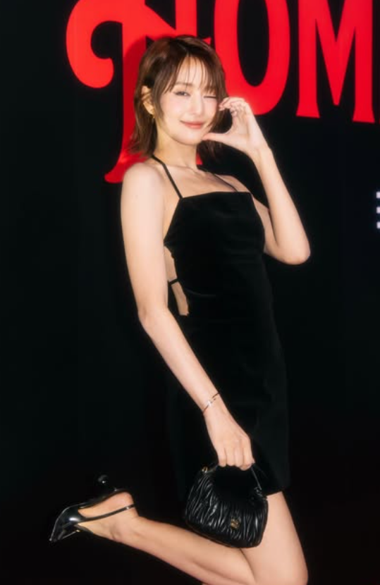 민니는 이날 등이 노출된 블랙 드레스로 멋을 냈다.