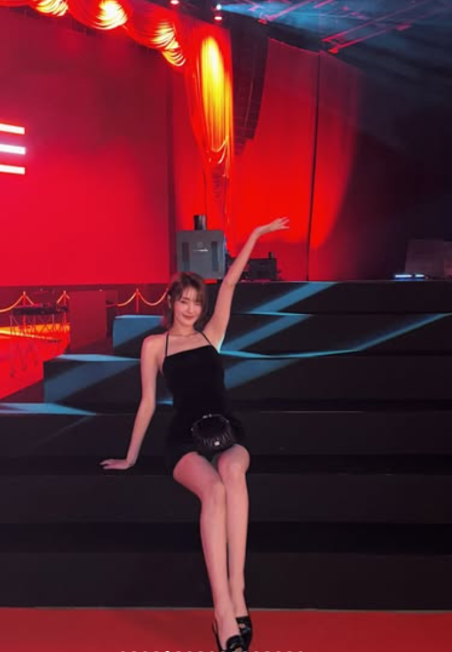민니는 이날 등이 노출된 블랙 드레스로 멋을 냈다. 시크하면서 발랄한 매력으로 시선을 사로잡았다. 또한 계단에 걸터 앉아 늘씬한 각선미를 뽐내기도 했다.
