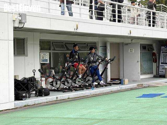 다소 조심스러운 동작으로 스트레칭을 마친 황희찬에게 팀 닥터가 다가갔고, 종아리를 만져보며 상태를 체크했다. 곧 황희찬은 전열에서 이탈해 보조경기장 스탠드 한 편에 마련된 사이클에 올랐다. 스태프가 황희찬 옆에서 계속해서 컨디션을 확인했다.