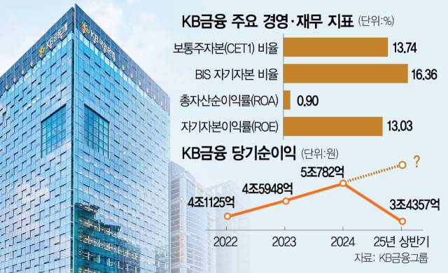 KB금융그룹이 올 상반기 약 3조 5000억 원의 당기순이익을 거두며 연간 순이익 6조 원 돌파를 눈앞에 뒀다.