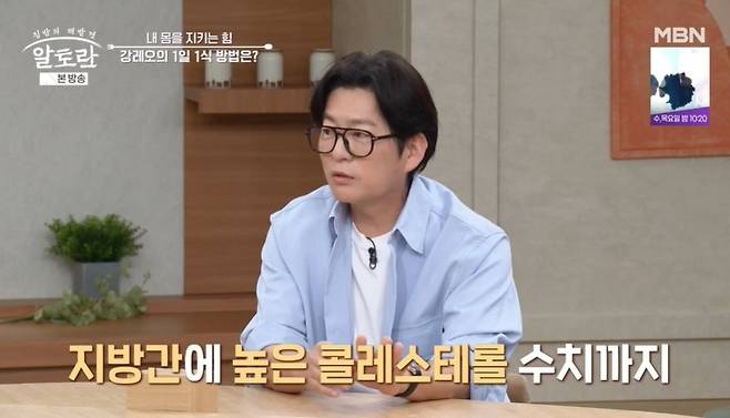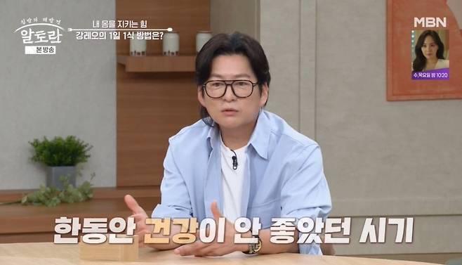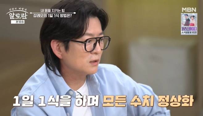 강레오는 "한동안 건강이 안 좋은 적이 있었다. 지방간에 콜레스테롤 수치도 높았다. 병원에서 고혈압 약을 먹어보라고 했는데, 너무 충격적이었다"라며 "살을 빼볼까 하다가 1일 1식하면서 모든 수치가 정상이 됐다"라고 고백했다.