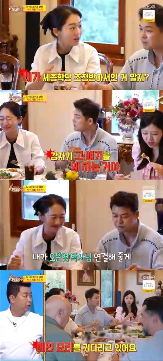엄지인은 튀르키예 가정식을 맛보던 도중 전현무를 향해 "이거 내가 세종학당 초청받아서인 거 알지"라고 생색을 냈다.