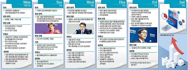 금융당국과 금융회사 경영자들의 만남도 시장 참가자들이 주목하는 이벤트다. 이억원 금융위원장은 16일 보험사 최고경영자(CEO)들과 만나 보험부채 평가 할인율 현실화 방안 등을 논의한다. 이찬진 금융감독원장은 14일 12개 회계법인 CEO와 간담회를 열어 자본시장 신뢰와 회계 투명성 제고 방안을 논의할 예정이다.