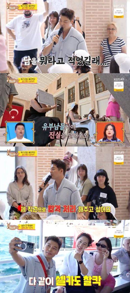 이후 한 외국인은 엄지인과 전현무에게 부부냐고 물었고, 전현무는 "싱글"이라고 소개했다.
