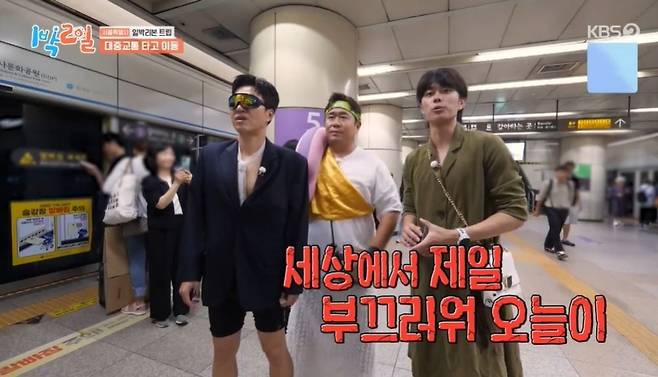 승자 팀은 택시, 패자 팀은 지하철을 이용해야 하는 상황. 유선호는 "이게 도대체 무슨 망신이야. 오늘이 세상에서 제일 부끄러워"라고 토로했고, 문세윤은 김종민이 쓴 선글라스를 부러워했다. 문세윤은 자신을 보고 놀란 시민들에게 "깜짝 놀라셨죠? 저도 많이 놀랐다"라고 너스레를 떨었다.