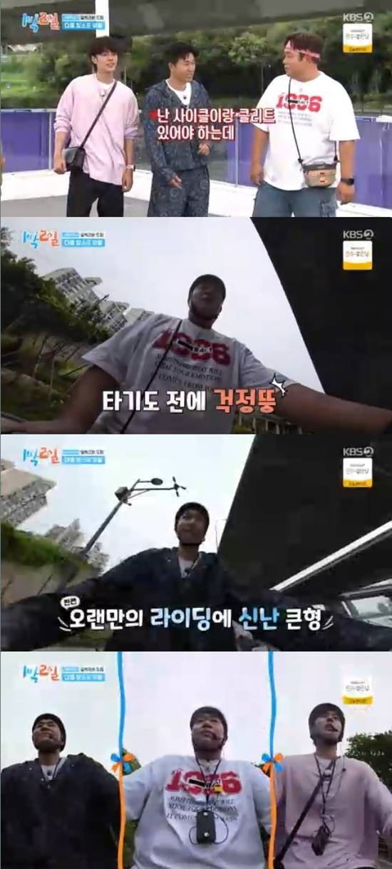 신구좋아 팀은 공유 자전거를 타고 다음 장소까지 이동하게 됐다. 문세윤이 걱정을 하는 사이 김종민은 오랜만의 라이딩에 신난 얼굴을 보였다.