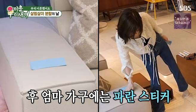 윤민수는 "한 2주 남았거든? 이사 가는 데가 2주 남아서 정리를 해야 한다"라고 했고, 김민지는 "윤후 아빠한테 정리해 놓은 거 설명은 해줘야 할 것 같아서"라며 서로 가져갈 가구를 나누자며 포스트잇을 건넸다.