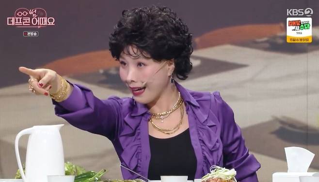 신봉선은 "오랜만에 밥 묵자"라며 "얘기 많이 들었다. 동거 생활 오래하고 모델?"이라고 했지만, 조수연은 그 남자가 아니라고 당황했다.