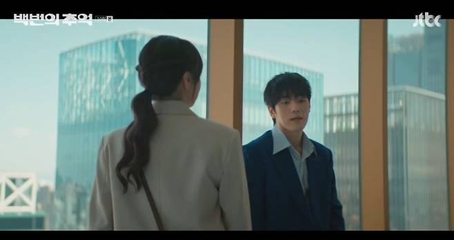 12일 JTBC '백번의 추억'에선 영례(김다미 분)를 향한 마음을 자각하고 그에게 직진하는 재필(허남준 분)의 모습이 그려졌다.