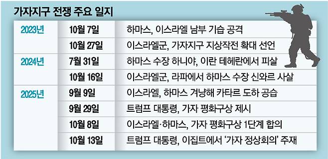 약 2년간 지속된 가자지구 전쟁이 이집트에서 도널드 트럼프 미국 대통령이 주재할 휴전 정상회의를 통해 일단락될 전망이다.