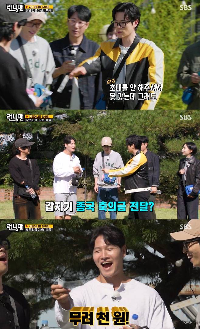 (엑스포츠뉴스 정민경 기자) '런닝맨' 김강우가 김종국에게 깜짝 축의금을 전달했다.