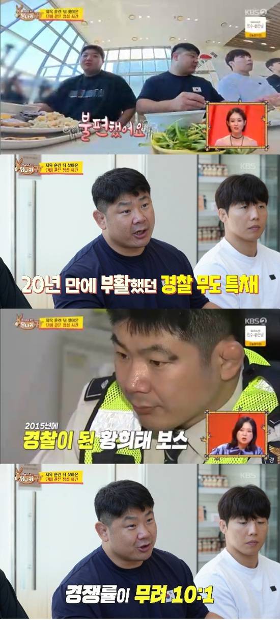 황희태는 식사를 하면서 2015년부터 2019년까지 강력계 형사로 근무했던 이력을 공개했다. 무도 특채가 20년 만에 부활해 10대 1의 경쟁률 뚫고 경찰이 됐다고.