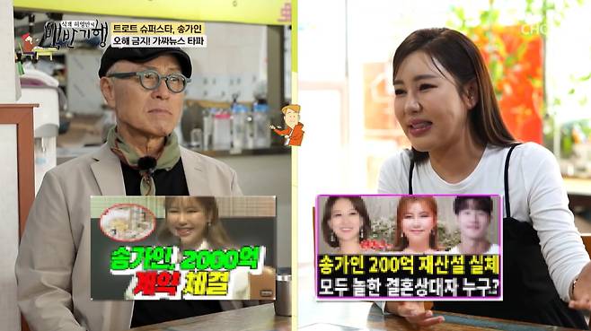 허영만이 "그동안 집 여러 채 살 돈 벌었지 않나"라고 묻자 송가인은 "사람들이 그렇게 생각하더라. 유튜브 가짜 뉴스도 보면 저는 이미 건물을 산 사람이다. 그런데 그렇게 못 벌었다"고 답했다.