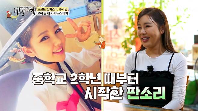 판소리를 배우다가 트로트로 전향한 송가인은 "진도에 전국노래자랑이 왔었다. 거기서 최우수상을 받고, 2년 후 트로트로 전향했다"고 밝혔다. 이어 "데뷔 후 7~8년은 무명생활을 하며 힘들었다"고 털어놨다.