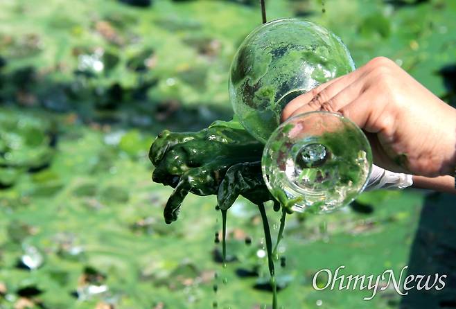 | ▲ 2022년 8월 4일 낙동강 김해 대동선착장 부근의 녹조 |