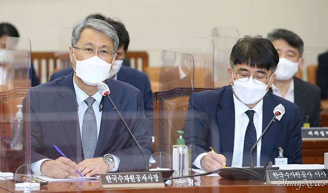 | ▲ 박재현 당시 한국수자원공사 사장이 지난 2021년 10월 21일 오후 서울 여의도 국회에서 열린 환경노동위원회 전체회의에 출석해 한국수자원공사 직원의 부산 에코델타시티사업 횡령사건 관련 질의에 답변하고 있다. |