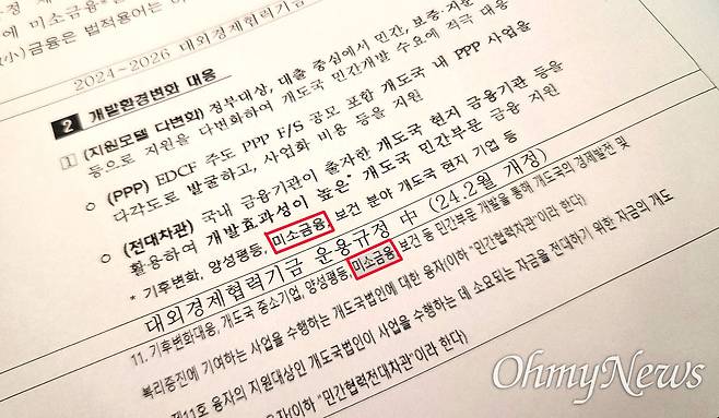 2024년 2월 7일 EDCF 운용위원회를 통해 민간협력전대차관 지원 분야에 미소금융이 왜 포함됐는지 그 사유가 아직까지도 확인되지 않고 있다는 것이다.