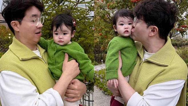 공개된 사진 속 박수홍은 딸을 품에 안고 함께 시간을 보내고 있는 모습이다. 특히 두 사람은 초록색 계열의 옷을 커플룩으로 입으며 시선을 빼앗았다. 딸 재이 역시 사랑스러운 표정으로 보는 이의 감탄을 자아냈다.