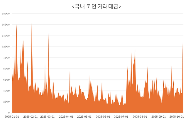 13일 코인게코에 따르면 지난 11일 국내 5대 가상자산거래소(업비트, 빗썸, 코인원, 코빗, 고팍스)의 24시간 거래대금은 127억달러를 기록했다.