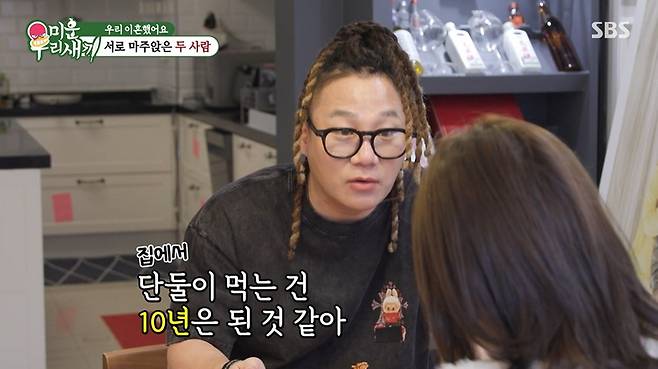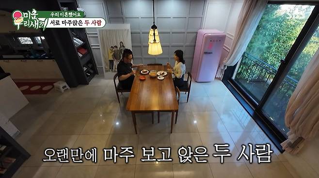 두 사람은 식탁에 마주 앉아 식사를 했다. 윤민수는 "얼마 만에 둘이 먹는 거냐. 집에서 단둘이 먹은 건 10년은 된 것 같다"며 웃었다. 이에 김민지는 "이 식탁에 둘이 앉아본 것도 처음이다. 우린 싸울 때만 여기 앉아 있다"며 공감했다. 그러자 윤민수는 "그게 문제였다"며 씁쓸한 표정을 지었다.