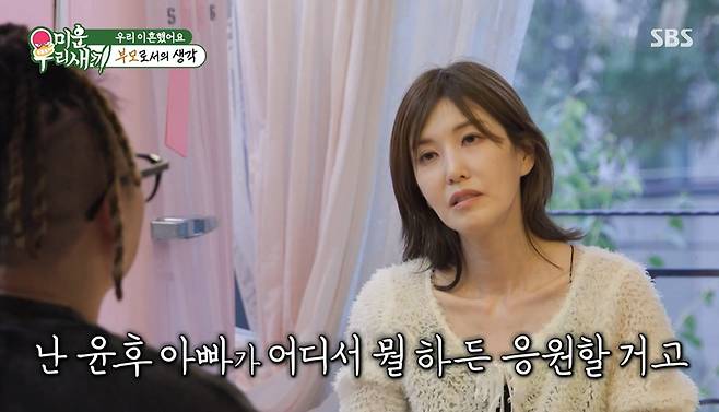 또 김민지는 "너무 어려서 서로 몰랐다. 어떤 사람이고 뭘 해야 하는 사람인지"라고 회상했다. 윤민수도 "지금 생각해 보면 미안한 점이 많다. 그래서 잘 살았으면 좋겠다"며 진심 어린 마음을 전했다. 김민지 역시 "20년 같이 살았으면 가족이다. 어디서 뭘 하든 지지하고 응원할 것"이라며 고개를 끄덕였다.
