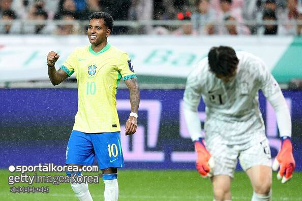 이날 브라질은 대한민국을 상대로 압도적인 경기력을 펼쳤다. 전반 10분 만에 이스테방 윌리앙이 선제골을 터뜨렸고, 전반 41분엔 호드리구가 골망을 갈랐다.