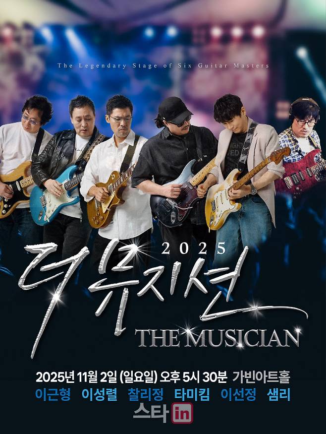 [이데일리 스타in 김현식 기자] 국내 최정상 기타리스트들이 무대에 오르는 ‘2025 더 뮤지션 콘서트’가 오는 11월 2일 오후 5시 30분 서울 강남구 가빈아트홀에서 열린다. 이번 공연에는 기타리스트 이근형, 이성렬, 타미킴, 이선정, 찰리정, 샘리 등이 참여한다.