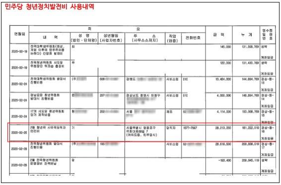 | ▲ 민주당 청년정치발전비 사용내역 |