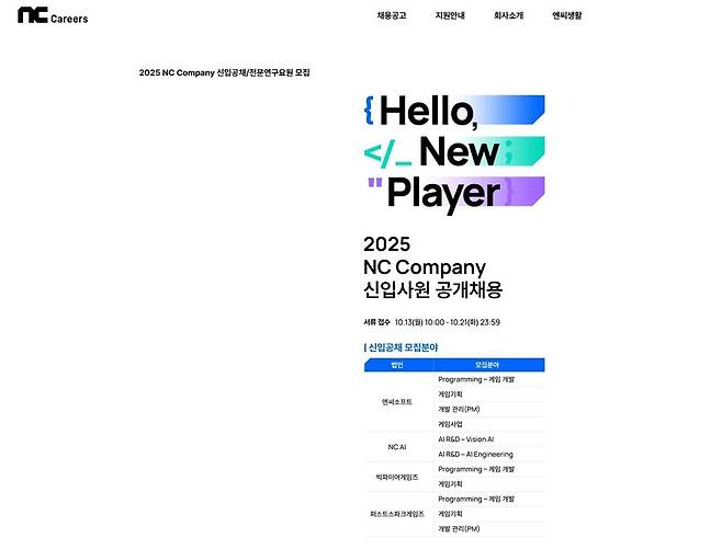 엔씨소프트(NC)가 오늘(13일)부터 2025 신입사원 공개채용 접수를 시작합니다.