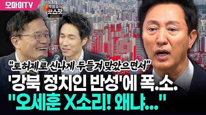 ◎ 박정호 > 그래요. 근데 지금 오세훈 시장이 행보를 하는 걸 보면. 이번에 보면 강북 정치인들 반성해야 된다라고 얘기를 해가지고. 당사자시잖아요.